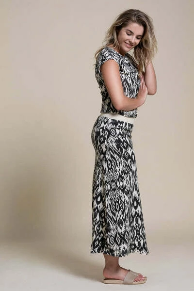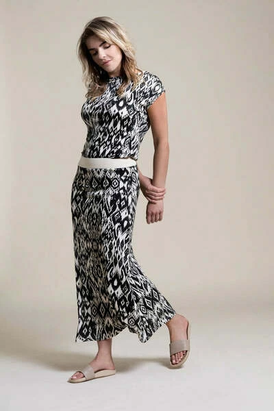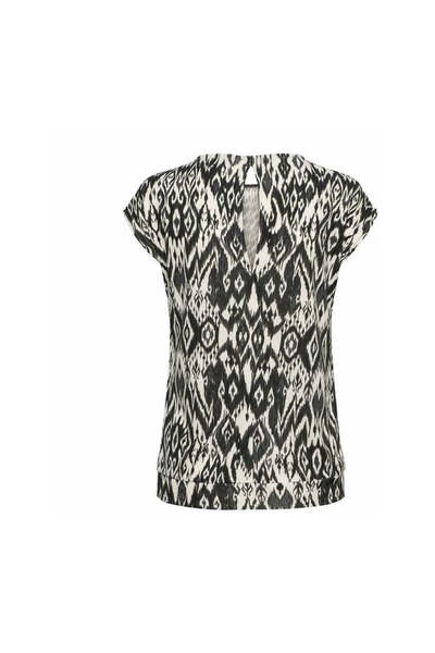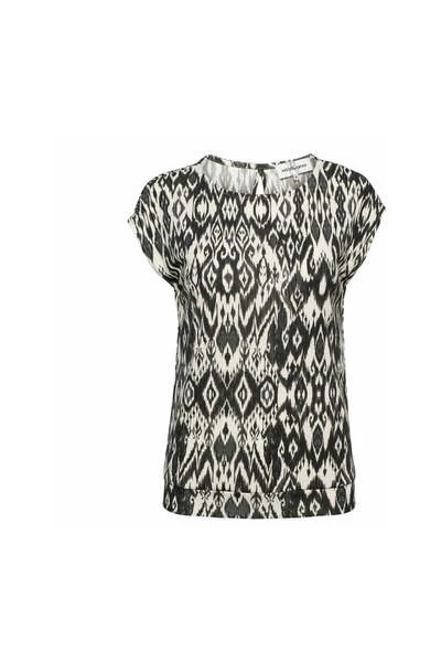 Deze print top met ronde hals, korte mouwen is gemaakt in een micro pes kwaliteit.Door de brede band aan de onderkant valt de top een beetje blousend en is zowel stoer als netjes te dragen.Extra details zijn:- Ronde hals- Korte mouw- Split middenachterMateriaal:100% PolyesterWasvoorschrift:Machinewas max. Fijnwas 30 graden Celsius. Niet in droger