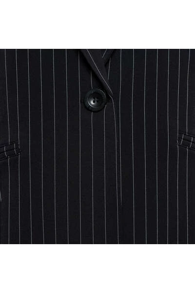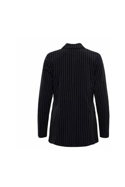 Deze mooie lange ongevoerde blazer is uitgevoerd in een zwaardere travel-kwaliteit met pinstripe.Extra details zijn:- Paspelzak in voorpand.- 1-knoops sluiting.- Kraag/revers.- Schouders met vulling.Materiaal:86% Polyamide – 13% Elastaan – 1% PolyesterWasvoorschrift:Machinewas max. Fijnwas 30 graden Celsius. Niet in droger