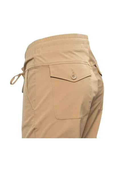 Deze stoere broek met verschillende details is uitgevoerd in een zwaardere travel-kwaliteit. Extra details zijn: Materiaal 87% Polyamide – 13% Elastaan Fancy self-fabric strikceintuur in taille. Steekzakken in voorpand. Opgestikte zakken met klep op achterpand.