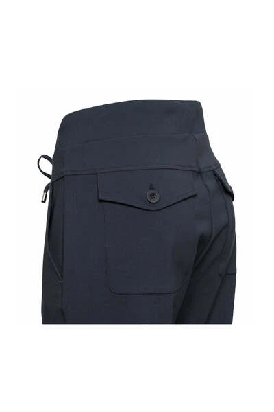 Deze stoere broek met verschillende details is uitgevoerd in een zwaardere travel-kwaliteit. Deze broek heeft een Fancy self-fabric strikceintuur in de taille, steekzakken in de voorpand, opgestikte zakken met klep op achterpand en is gemaakt van 87% Polyamide, 13% Elasthan.
