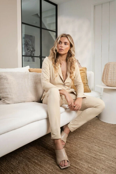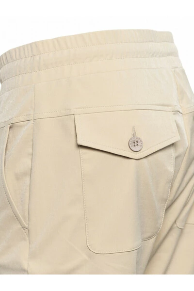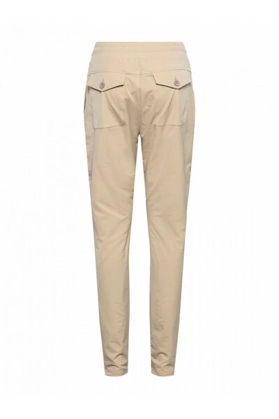 Broek met elastische tailleband, steekzakken met koord en klepzakken.