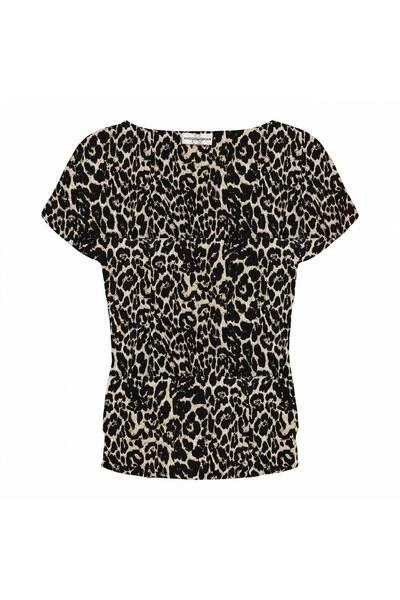 Deze stoere top met aangeknipte mouw is uitgevoerd in een travel-kwaliteit met allover print.nExtra details zijn:n- Aangeknipte mouwen.n- Ronde hals.n- Tailleband.