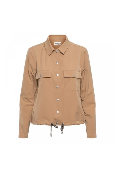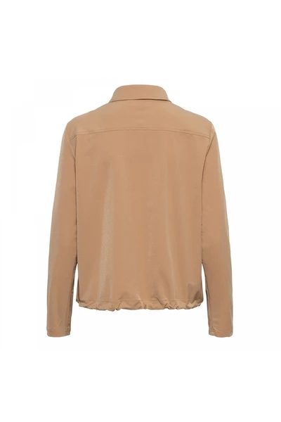 Dit sportief ongevoerde jacket is uitgevoerd in een zwaardere travel-kwaliteit. Extra details zijn: – Borstzakjes met klep. – Drukknoopsluiting middenvoor. – Kraag. – Lange mouw. – Fancy koord in taille voor blousend effect. Leuk te dragen met de Penny pants van ;Co Woman. Materiaal: 87% Polyamide – 13% Elastaan Wasvoorschrift: Machinewas max. Fijnwas 30 graden Celsius. Niet in droger Travel HT